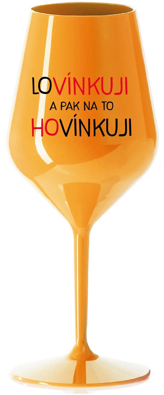 LOVÍNKUJI A PAK NA TO HOVÍNKUJI - oranžová nerozbitná sklenice na víno 470 ml