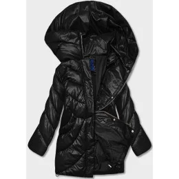 Dámska voľná zimná bunda z ekokože čierna (AG2-J90)