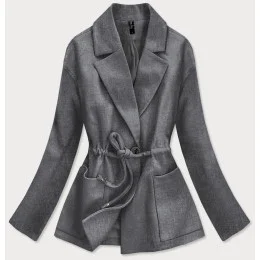 Voľný krátky dámsky kabát v grafitovej farbe (2727)