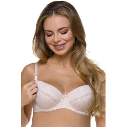 Biustonosz marki Lupo. Model 1732. Posiada druty, które podpierają piersi odpowiednio je kształtując. Produkt posiada regulowane ramiączka bez możliwości ich odpięcia. Haczyki do ramiączek plastikowe. Biustonosz zapinany na haftki. Miejsce zapięcia: tył. Dwa rzędy haftek pionowych. Trzy stopnie haftek poziomych. Produkt został wykonany z 70% poliamid, 20% elastan, 10% bawełna. Bielizna ma odpinaną miseczkę. Odzież ciążowa. Zalety produktu: elegancki wzorzysty ciążowy do karmienia. Produkt damski.