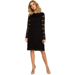 M406 krajkové šaty do áčka s dlhými rukávmi - čierne