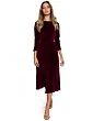 M557 Zamatové midi šaty s volánovými rukávmi - bordové