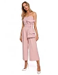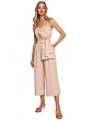 95% polyester 5% elastan Prelomte stereotypy a ukážte svoju individualitu: S týmto ležérnym overalom to na večierku roztočíte! Nápadný živôtik bez ramienok s mašľou a zaväzovacím pásom, ktorý stiahne váš pás, lichotí vašej siluete a široké nohy s dĺžkou do polovice lýtok podčiarkujú originálny charakter oblečenia.INFORMÁCIE O VÝROBKU: Tkaný materiál jednodielny overal bez ramienok s predným umelým zavinovacím prekrytím a zaväzovacím pásom definovaným ozdobnou mašľou detaily vpredu a vzadu široké nohy dĺžka 7/8 bočné vrecká zadné zapínanie na zips Náš model meria 171 cm a nosí veľkosť S