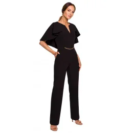 95% polyester 5% elastan Tento jednodielny overal s efektom peleríny na chrbte a reťazou vpredu určite upúta pozornosť.INFORMÁCIE O PRODUKTE: Tkaná textília Jednodielny overal s efektom peleríny Rozdelený výstrih Rovné nohy Ozdobná reťaz v páse Skryté zapínanie na zips na zadnej strane Bočné vrecká Náš model meria 171 cm a nosí veľkosť S
