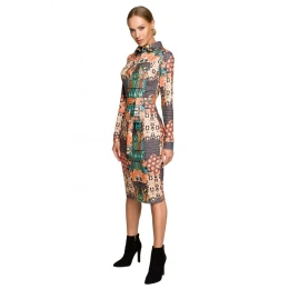 M706 Šaty s rukávmi, golierom a potlačou - model 3