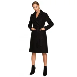 M708 Fleecový kabát s opaskom a vreckami - čierny