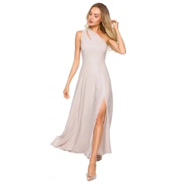M718 Maxi šaty na jedno rameno - šampanské