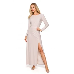M719 Maxi šaty s dlhými rukávmi - šampanské