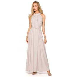 M721 Maxi šaty bez rukávov - šampanské