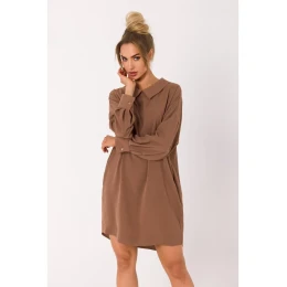 M740 Košeľové šaty s ozdobným golierom - čokoládové