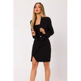 95% polyester 5% elastan Orezaná silueta, klasický golier a zapínanie na jeden gombík - moderný a hravý dizajn, ktorý pozdvihne váš pracovný alebo bežný outfit.INFORMÁCIE O PRODUKTE: Tkaný materiál Orezaná bunda s jedným gombíkom, golierom a imitáciou vrecka vpredu Dlhé rukávy regular fit plne podšitá Náš model má 171 cm a nosí veľkosť S