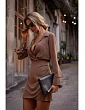 95 % polyester 5 % elastan INFORMÁCIE O PRODUKTE: tkaná krepová látka košeľové šaty v dĺžke mini zábalu V-výstrih s golierom dlhé rukávy s manžetami na gombíky zábalová sukňa s pásom s bočným rozparkom skrytý bočný zips bez podšívky naša modelka je vysoká 171 cm a nosí veľkosť S navrhnuté a vyrobené v Poľsku