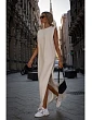 92% bavlna 8% elastan INFORMÁCIE O PRODUKTE: úpletová tkanina nadrozmerné maxi šaty s bočným rozdelením pretiahnuté cez hlavu bez rukávov s polstrovanými ramenami ozdobný odznak s logom na chrbte bez podšívky náš model je vysoký 171 cm a nosí veľkosť S navrhnuté a vyrobené v Poľsku