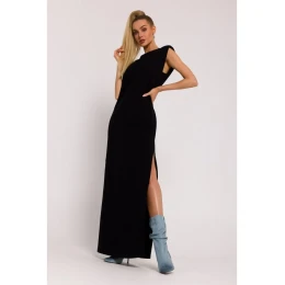 M790 Maxi šaty s ramennými vypchávkami - čierne