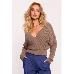M809 Orezaný sveter s výstrihom do V - cappuccino