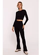 M816 Rebrované legíny s rozdelenou nohavicou - čierne