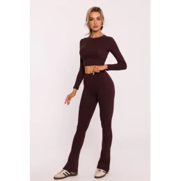 M816 Rebrované legíny s rozdelenou nohavicou - hnedé