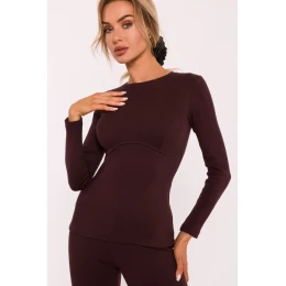 M817 Rebrovaný korzetový top s dlhými rukávmi - hnedý