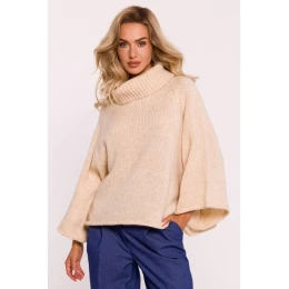 M822 Trapézový sveter s rolákom - béžový