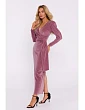 M828 Zamatové maxi šaty s hlbokým výstrihom do V - krepové ružové