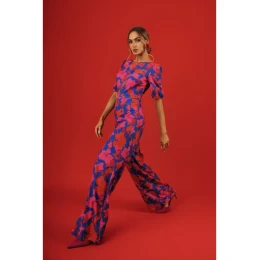 100% polyester PODŠÍVKA 95% polyester 5% elastan MATERIÁL Materiál: jemná potištěná tkanina, matný povrch PODROBNOSTI O PRODUKTU Výstřih: vpředu kulatý výstřih, vzadu volný Kapsy: žádné Vzor: pestrobarevný, květinový Podšívka: částečně podšitá, živůtek podšitý Zapínání: skrytý zadní zip, vzadu knoflíky potažené látkou Model: M857 Navrženo a vyrobeno v Polsku Modelka na fotografii je vysoká 171 cm a má na sobě velikost S STŘIH A VÝSTŘIH Střih: na míru/univerzální střih Tvar: vypasovaný top s širokými nohavicemi Délka: po celé délce nohavic Délka rukávů: krátké nadýchané rukávy, nabírané, s manžetou