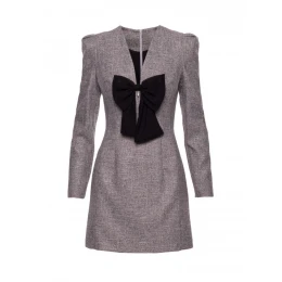Hlavní tkanina: 70% polyester 27% rayon 3% spandex Podšívka: 95% polyester 5% elastan Materiál: Tkanina Tweed PODROBNOSTI O PRODUKTU Výstřih: Hluboký výstřih do V Rukávy: Dlouhé Zapínání: Skrytý zip na zádech Kapsy: Žádné Podšívka: Ano Vzor: Mélange Detaily: Ozdobný odnímatelný detail - šifonová mašle s přívěskem ve stylu šperku Model: M869 Navrženo a vyrobeno v Polsku Modelka na fotografii měří 171 cm a má na sobě velikost S Střih a střih Střih: Lehce přizpůsobený Tvar: Zvýrazňující pas, mírně rozšířená ramena s puff detaily Délka: Mini