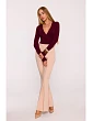 materiál: 95% polyester 5% elastan Textília: Hladká tkanina s matným povrchom PODROBNOSTI O PRODUKTE Pás: Vysoký pás Zapínanie: Skrytý zips na chrbte Vrecká: Bočné vrecká Nohavice: Dlhé, rozšírené v spodnej časti s výraznými záhybmi vpredu Podšívka: bez podšívky Model: M874 Navrhnuté a vyrobené v Poľsku Model na fotografii má 171 cm a nosí veľkosť S Strih a strih Strih: Priliehavý v oblasti bokov, rozšírený v spodnej časti Tvar: Silueta vymedzujúca pás a predlžujúca nohy Dĺžka: Dĺžka po zem