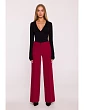 materiál: 95% polyester 5% elastan Textília: Hladká tkanina s matným povrchom PODROBNOSTI O VÝROBKU Pás: Stredný pás Zapínanie: Gombík vpredu a skrytý zips Vrecká: Bočné vrecká Nohavice: Dlhé, široké nohavice s lisovanými záhybmi Podšívka: Bez podšívky Model: M875 Navrhnutý a vyrobený v Poľsku Model na fotografii má 171 cm a nosí veľkosť S Strih a strih: Klasický strih so širokou siluetou Tvar: Priliehavý v páse a na bokoch, voľný od stehien nadol Dĺžka: Dĺžka po zem
