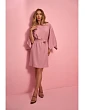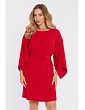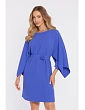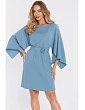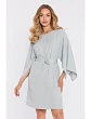 95% polyester 5% elastane MATERIAL Fabric: smooth fabric with a subtle sheen. PRODUCT DETAILS Neckline: boat / modest round-boat shape – subtly highlights the neckline. Sleeves: wide, relaxed kimono/cape-style sleeves – fluid and statement-making. Waist: defined with a belt (separate piece, included with the dress) Skirt: straight, easy fit with a subtle A-line feel. Closure: none, slip-on style (pulled on over the head). Pockets: none. Lining: none. Model: M908. Designed and made in Poland. The model in the photo is 171 cm tall and is wearing size S. FIT AND CUT Style: minimalist dress with wide sleeves and a matching belt. Shape: relaxed kimono top, waist shaped with the belt, clean straight skirt. Length: above the knee.