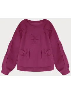 Dámska teplá mikina vo fuchsiovej farbe s mašľami (23999)