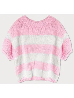 Volný dámský svetr v neonově růžové barvě s krátkými rukávy model 20082453 - MADE IN ITALY