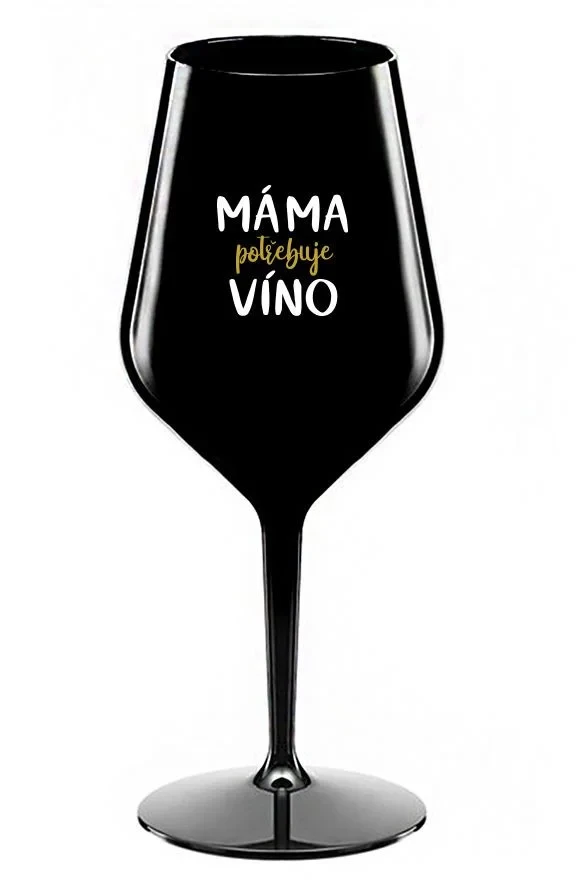 MÁMA POTŘEBUJE VÍNO - černá nerozbitná sklenice na víno 470 ml