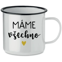 Smaltovaný Plecháček pro Chvíle Pohody - S Úsměvem a Teplem V našem rychlém světě je důležité najít si chvilku klidu a pohody. Naše nová kolekce smaltovaných plecháčků je jako stvořená právě pro tyto momenty. Každý plecháček je vyroben s láskou a pečlivostí, aby doprovázel vaše chvíle odpočinku, ať už si vychutnáváte šálek voňavé kávy, lahodného čaje nebo teplého kakaa. S objemem 350 ml jsou tyto tradiční smaltované hrnky perfektními společníky pro každý den. A co je na nich nejlepší? Každý z nich nese vtipný motiv: MÁME VŠECHNO, který rozjasní váš den a přinese úsměv na tvář. Tyto hrnky jsou jako malé pohlazení pro duši - ideální pro chvíle, kdy jste sami sebou, nebo pro ty nezapomenutelné okamžiky strávené s vašimi nejbližšími. Zapomeňte na chvíli na všechny starosti a užijte si klidný moment s naším smaltovaným plecháčkem. Objednejte si jej nyní a připravte se na maximální požitek z každého doušku! Doporučujeme ruční mytí tohoto produktu pro zachování jeho kvality a trvanlivosti. Nedoporučujeme umisťovat do myčky na nádobí.parametre