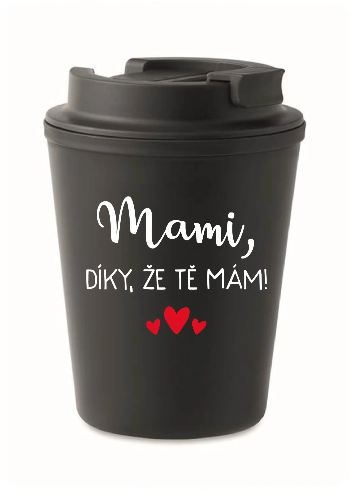 MAMI, DÍKY, ŽE TĚ MÁM! - černý termohrnek 300 ml
