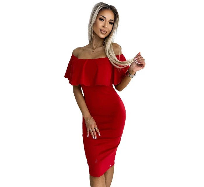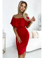 Marbella - ceruzkové šaty s volánom - španielske šaty. zapínajú sa na boku na krytý zips. vyrobené z hrubšieho elastického materiálu v červenej farbe. značka numoco. poľská výroba.
