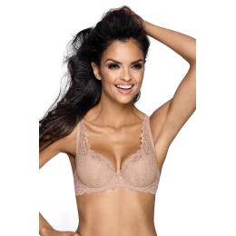 Podprsenka značky Mat, model 053/22 Carmela. má drôtiky, ktoré podporujú prsia a správne ich tvarujú. zvislé veľrybie kostice na bokoch. výrobok má nastaviteľné ramienka bez možnosti ich odopnutia. zapínanie na háčiky. miesto zapínania: na chrbte. 2 rady zvislých háčikov. 3 úrovne vodorovných háčikov. výrobok je vyrobený zo 66 % polyamidu, 18 % bavlny, 10 % polyuretánu, 6 % elastanu. dámsky výrobok. vlastnosti výrobku: biela farba, čipka.