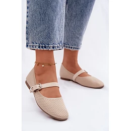 Materiálové Baleríny s Páskem a Přezkou Béžové Jelisa