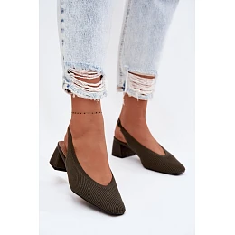 Materiálové dámské sandály na podpatku tmavě zelené model 22102914 - Boto