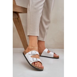 Materiałowe Klapki Na Korkowej Podeszwie Z Klamrami Jasnoszare Atera