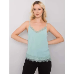 Top v mätovej farbe s čipkou .