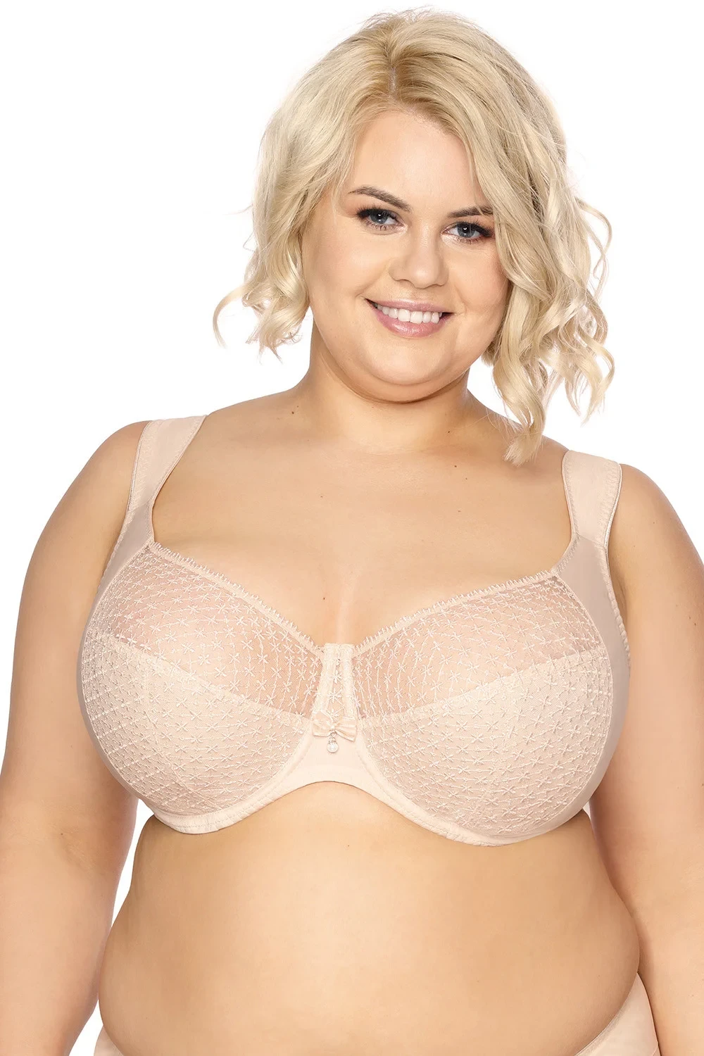 Podprsenka Gaia. Model 874M Samira Maxi. Má dráty, které prsa vhodně tvarují. Svislé velrybí kosti zasazené po stranách. Výrobek má nastavitelné popruhy bez možnosti odepnutí. Podprsenka se zapínáním na háčky a oči. Upevňovací bod: vzadu. Tři řady svislých háčků. Tři stupně horizontálních háčků. Výrobek je vyroben z 91 % z polyamidu a 9 % z elastanu. Výrobek pro ženy. Výhody produktu: klasika pro větší prsa.parametre