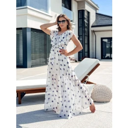 Sukienka maxi MARISOL to doskonała propozycja dla kobiet w każdym wieku i o różnorodnych typach sylwetki. Przepiękny kobiecy wzór dodaje jej wyjątkowego, wakacyjnego charakteru. Sukienka posiada uroczy, delikatny dekolt z falbanką, który subtelnie podkreśla kobiece atuty, a wiązanie w pasie pięknie zaznacza talię. Idealna na różnorodne okazje – zarówno na letnie dni, jak i na bardziej formalne wydarzenia. Dodaj sukienkę MARISOL do swojej kolekcji i poczuj się wyjątkowo stylowo!
