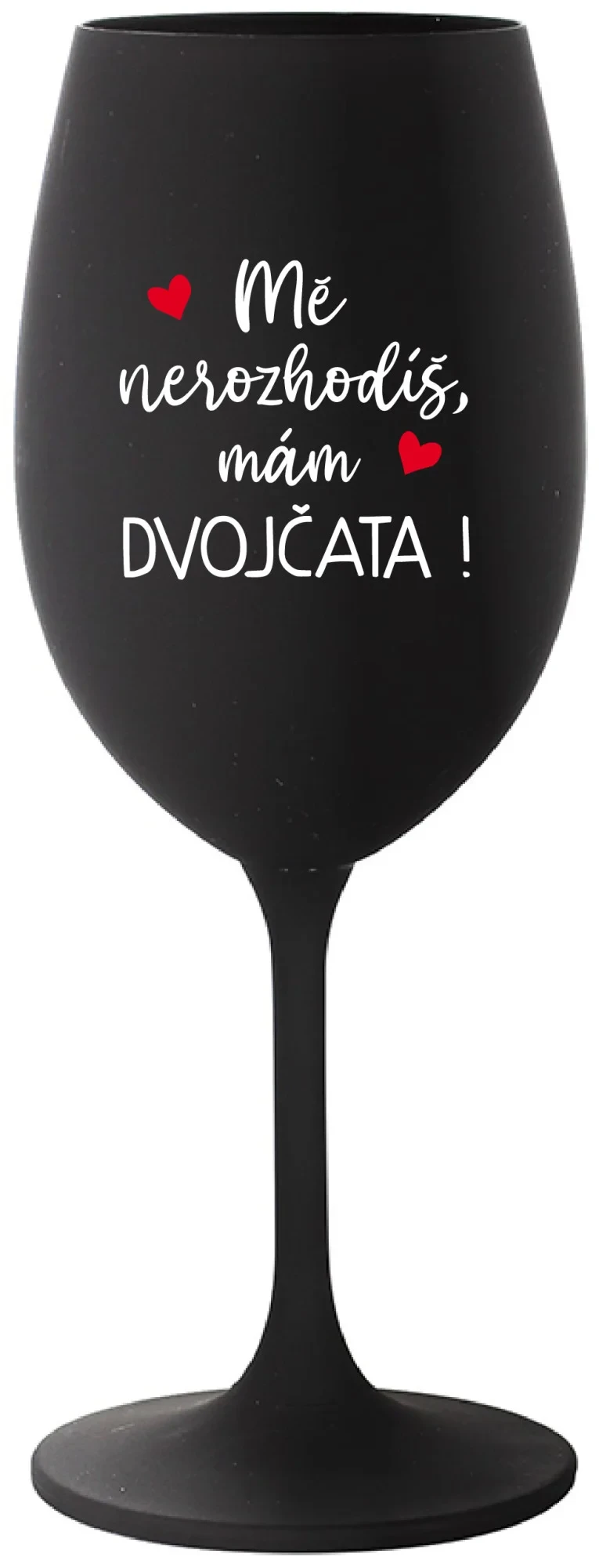 MĚ NEROZHODÍŠ, MÁM DVOJČATA! - černá sklenice na víno 350 ml