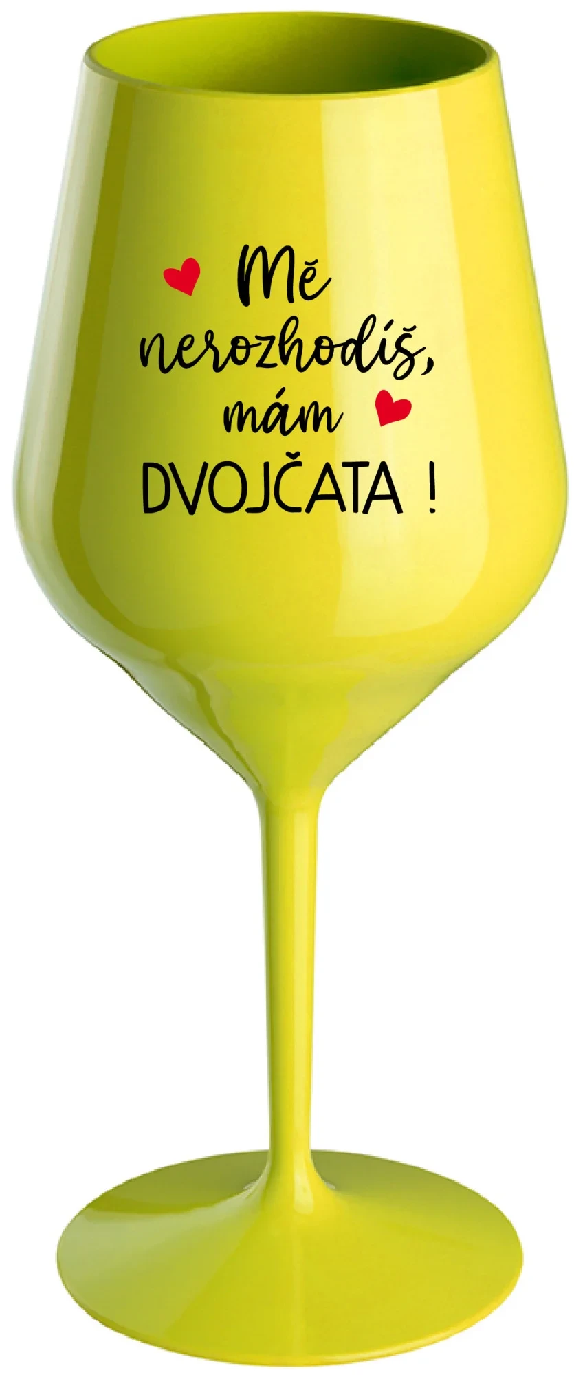MĚ NEROZHODÍŠ, MÁM DVOJČATA! - žlutá nerozbitná sklenice na víno 470 ml
