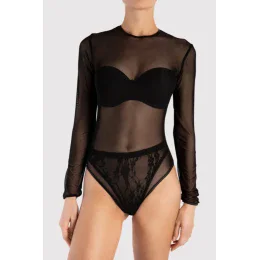 Toto elegantné body s dlhými rukávmi je vyrobené z priehľadného a elastického sieťovaného úpletu, ktorý mu dodáva zmyselný a jemný pocit. Má jemnú a vzdušnú štruktúru.Zmyselný priehľadný úplet zvýrazňuje ženské krivky a zároveň zaručuje dokonalé prispôsobenie a vysoký komfort pri nosení. Materiály použité pri výrobe pochádzajú od renomovaných európskych výrobcov, čo zaručuje vysokú kvalitu a trvanlivosť výrobku.