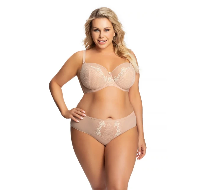 Košíčky jsou vyrobené ze dvojité síťoviny ozdobené výšivkou. Ramínka je možné nastavit, ale nelze je odepnout. Obvod je zpevněný bočními kosticemi. Podprsenka se zapíná háčky s trojí možností nastavení délky obvodu.