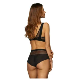 Měkké košíčky ze síťoviny jsou podšité tenkou houbičkou. Výstřih, ramínka a spodní okraj modelu tvoří široká pružná guma. Ramínka mají ve přední části čtyřstupňovou možnost nastavení délky. Díky dokonalému střihu a konstrukci podprsenka stabilně nadnáší poprsí a poskytuje mu oporu i při intenzivní fyzické námaze a aktivitě.