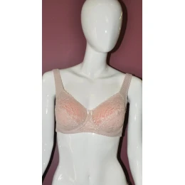 Spodní část košíčků je podšitá materiálem. Vrchní část košíčků lemuje ažurová krajka. Model má boční panel, který pěkně stahuje poprsí ke středu hrudníku. Podprsenka se zapíná dvěma, nebo třemi háčky s trojí možností nastavení délky obvodu. Model je vhodný pro ženy s větším poprsím.
