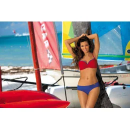 Plavky sú hladké, mierne športové a jednoducho nadčasové. Podprsenka je podšitá mäkkou látkou, v spodnej časti mierne zaštípnutá, čo dodáva chladivý efekt. Farba okamžite upúta pozornosť. Košíčky sú vystužené, spevnené veľrybími kosťami (spodná časť a boky), ktoré dokonale modelujú prsia. Veľkosti S, M, L majú súčasťou (vyberateľné) push up vypchávky, ktoré umiestnené vo vnútri modelu sexuálne nadvihujú a zväčšujú prsia a dodávajú "wow" efekt. Nastaviteľné ramienka, elastický pás, zapínanie na pracku.