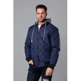 Tmavomodrá pánska bunda typu "bomber" s teplákovou kapucňou (8M986-215)
